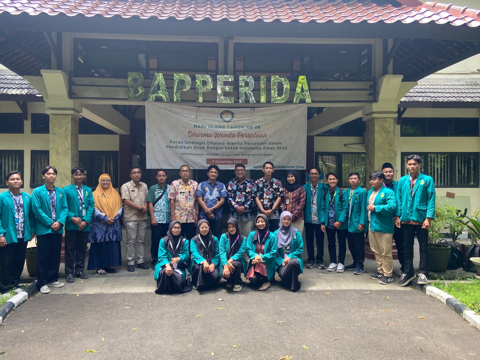 Kabupaten Tegal — Sebagai bagian dari evaluasi pelaksanaan Kuliah Kerja Nyata (KKN) di Kabupaten Tegal, Badan Perencanaan Pembangunan Daerah Penelitian dan Pengembangan (Bappedalitbang) mengundang mahasiswa dan dosen perguruan tinggi untuk menyampaikan laporan kegiatan serta memaparkan inovasi yang telah dikembangkan selama masa KKN.